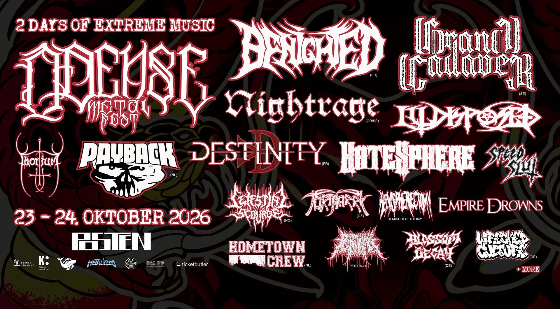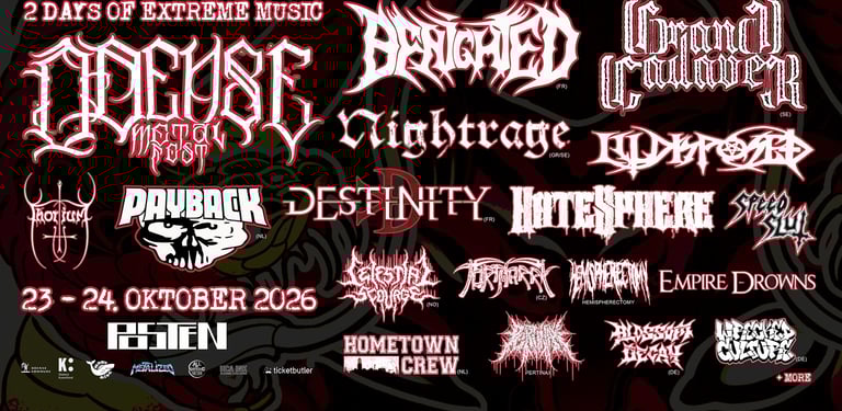 Join us for an unforgettable weekend of extreme music featuring 20 bands on October 23-24, 2026 in Odense, Denmark.
