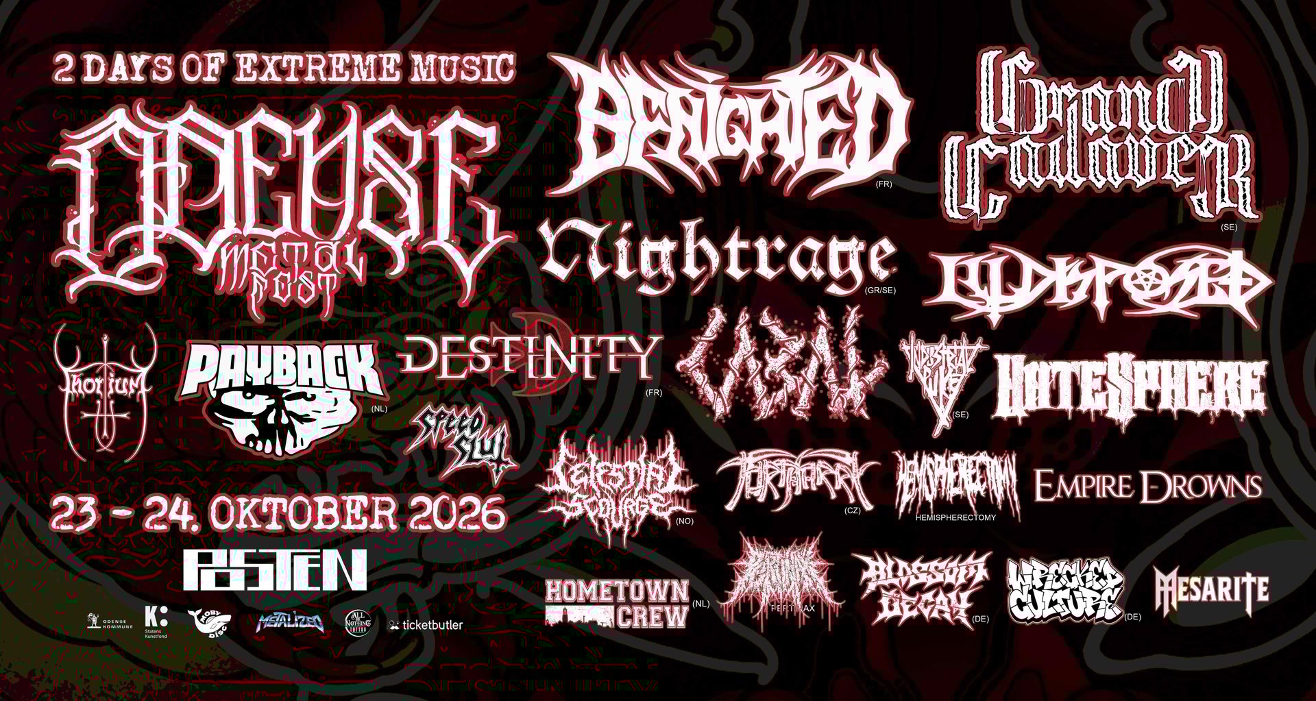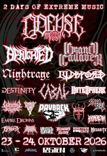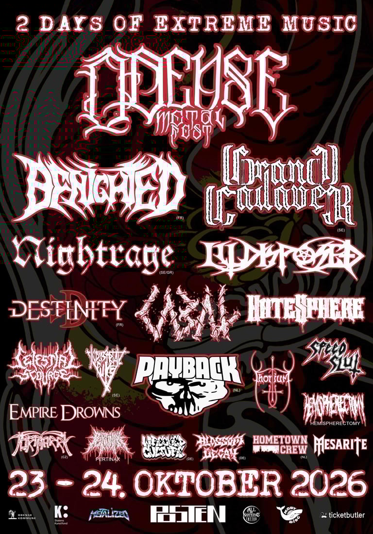 Join us for an unforgettable weekend of extreme music featuring 20 bands on October 23-24, 2026 in Odense, Denmark.
